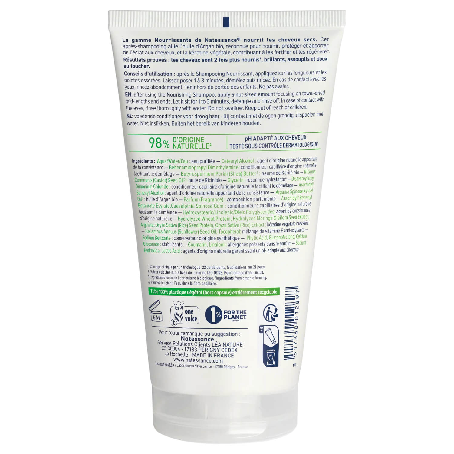 Per un effetto potenziato, utilizza in sinergia con lo Shampoo nutriente di Natessance.