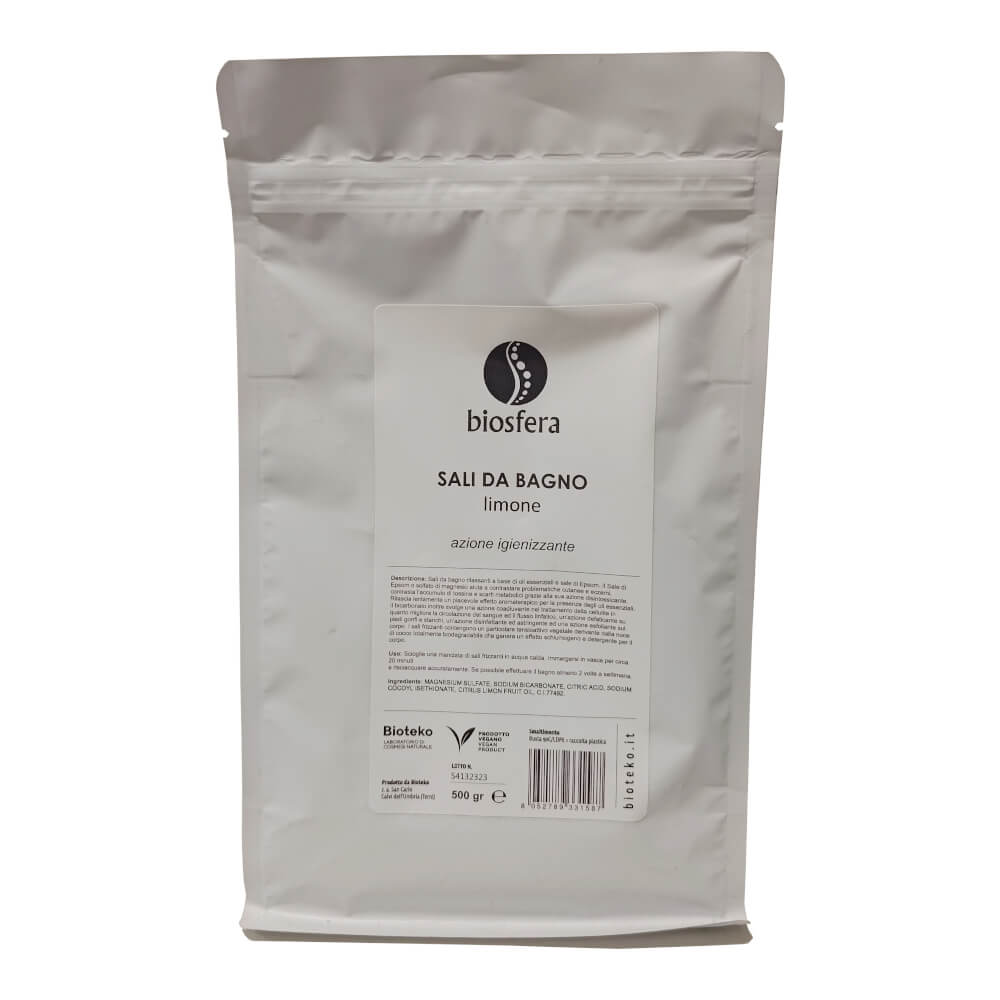 Sali da bagno frizzanti e rivitalizzanti a base di sale di Epsom e olio essenziale di Limone, ideali per purificare la pelle, stimolare la circolazione e donare energia immediata al corpo e alla mente.