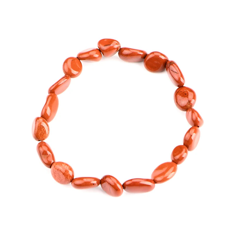 Secondo la tradizione il Diaspro rosso apporta gioia e serenità, una pietra porta fortuna che favorisce il pensiero positivo. Grandezza delle pietre: 8 - 10 mm Circonferenza: 18/19 cm