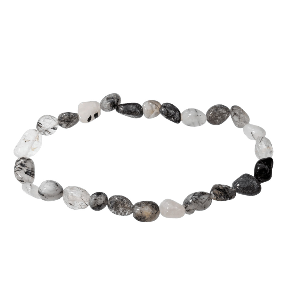 Bracciale elastico lavorato a mano, con "pepite" di Quarzo tormalinato. Trattandosi di una pietra naturale ogni bracciale è un pezzo unico in quanto si differenzia sia per la forma delle "pepite" che per le loro sfumature di tonalità e venature. Secondo la tradizione il Quarzo tormalinato schiarisce i pensieri e aiuta a concentrarsi meglio sugli obbiettivi e le priorità, aiuta a purificare l'Aura (il campo luminoso non visibile ad occhio nudo che circonda tutti gli essere viventi) dalla negatività. Circonferenza: 18/19 cm