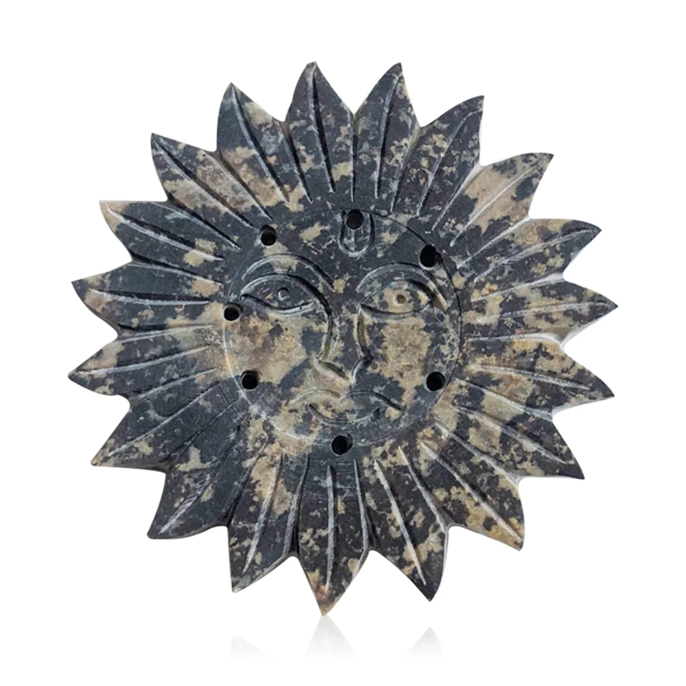 Portaincenso in pietra saponaria a forma di Sole, fatto a mano in India.