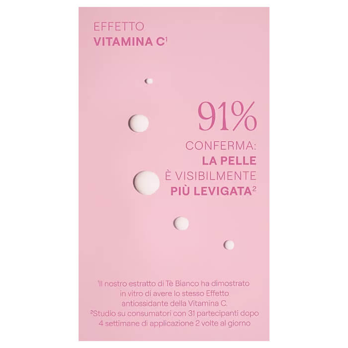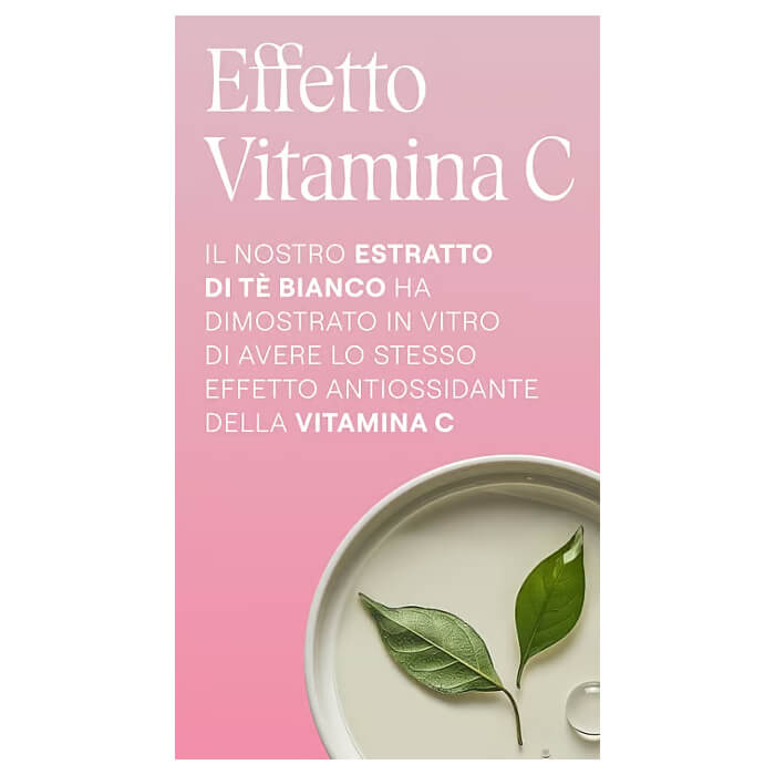 Estratto di Tè bianco: Antiossidante ad alta efficacia, aiuta a proteggere la pelle dallo stress ossidativo con un effetto paragonabile alla vitamina C.