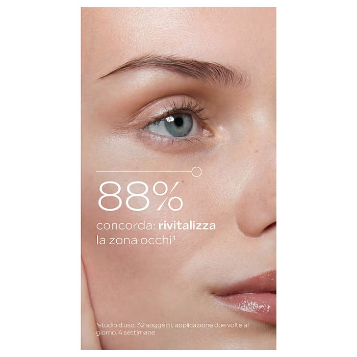 La sua formula tonificante agisce sulla zona fragile del contorno occhi migliorando elasticità e compattezza cutanea, per una pelle visibilmente più luminosa e uniforme giorno dopo giorno.