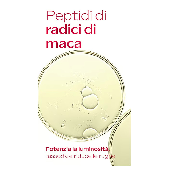 Peptidi della radice di Maca biologica: Favoriscono la rigenerazione cutanea e contribuiscono a rendere la pelle più compatta.