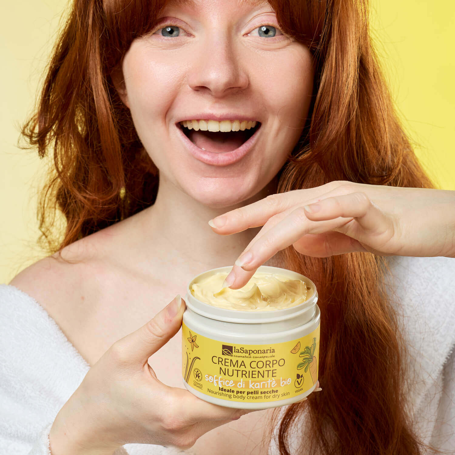 È molto nutriente. Si assorbe dopo un pò ma lascia la pelle decisamente morbida e nutrita, appunto. Inoltre, ha un profumo delicato e non invasivo, ma questo è soggettivo. La uso durante l'inverno e mi trovo benissimo, tanto da ricomprarla più volte. Consigliata per il periodo prettamente invernale.