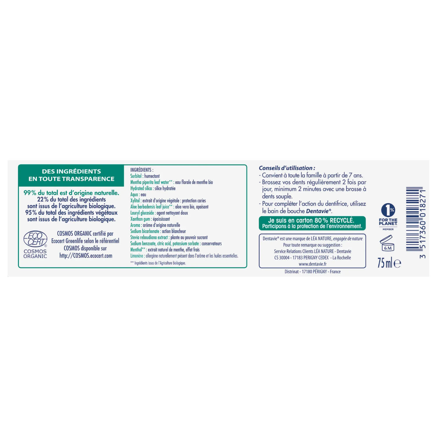 Dentifricio naturale senza fluoro, certificato bio Cosmos organic da Ecocert e Cosmebio