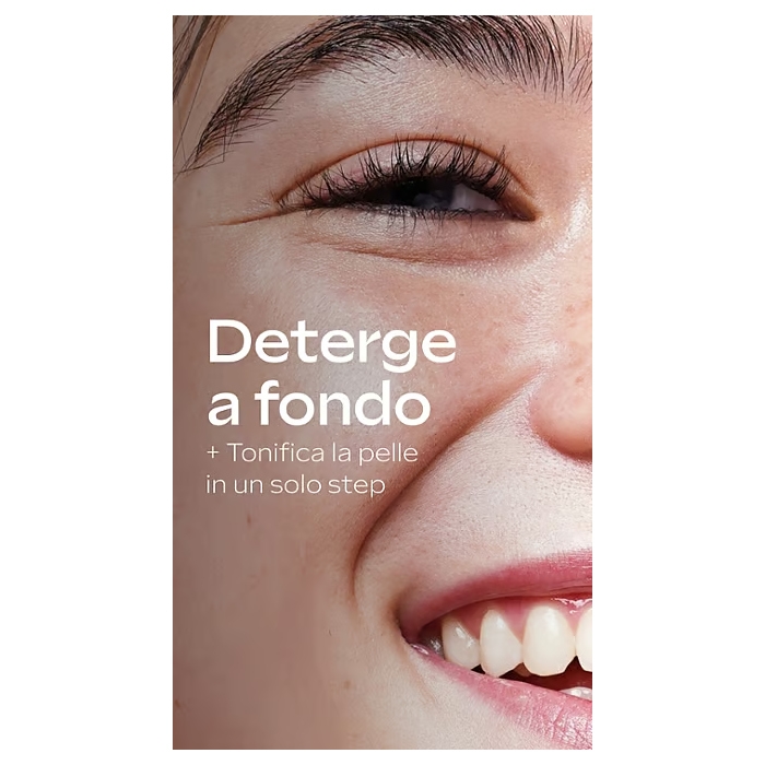 Detergente e tonico 2in1 dalla texture lattiginosa, formulato per detergere, struccare e tonificare la pelle in un solo gesto, semplificando la beauty routine quotidiana.