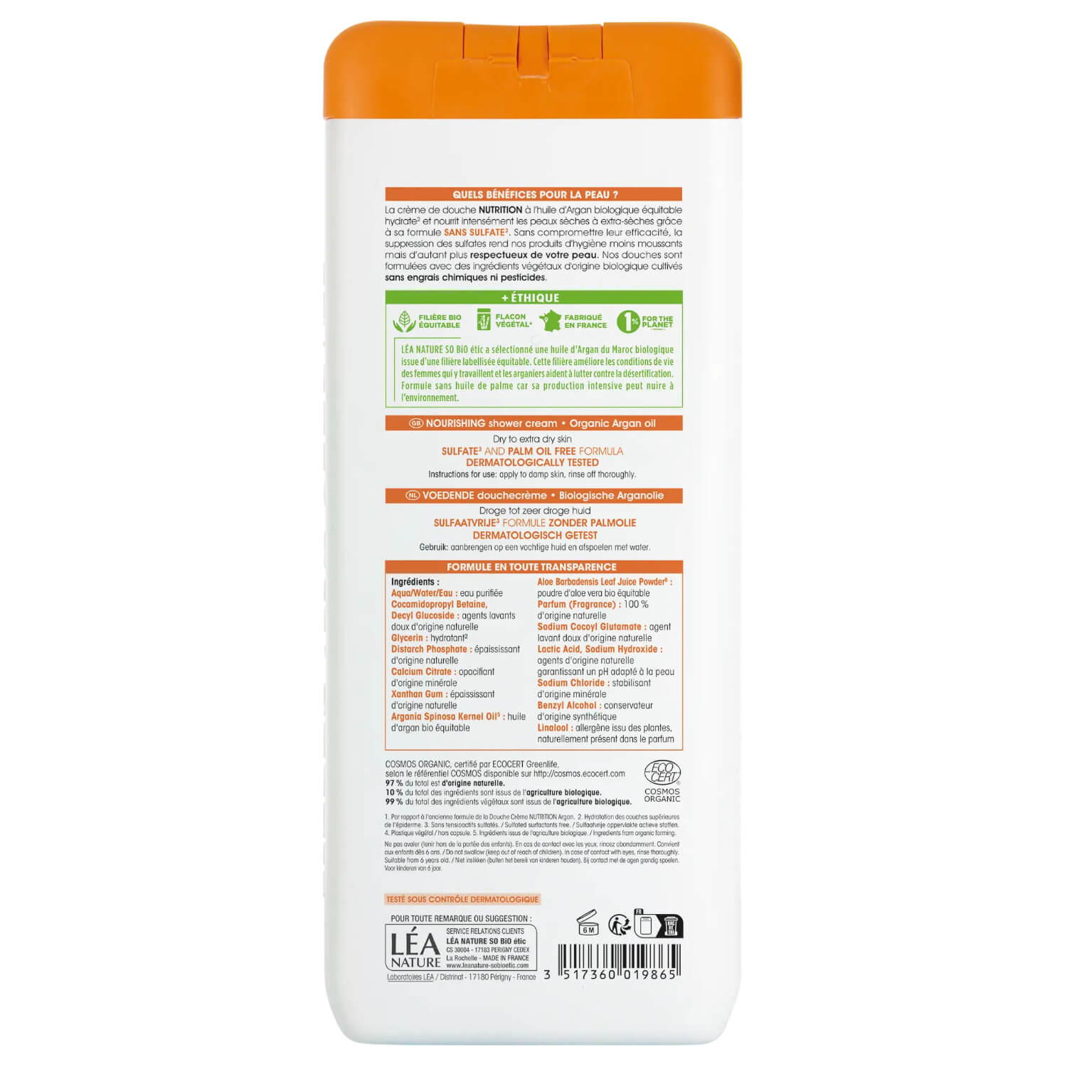 Doccia-crema nutrition Argan bio, nutriente e protettiva, certificata Cosmos organic da Ecocert e Cosmebio