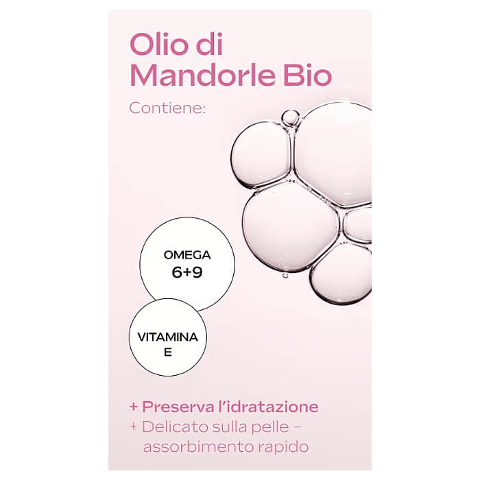 Olio di Mandorle dolci biologico: Nutriente ed emolliente, aiuta a rinforzare la barriera cutanea.