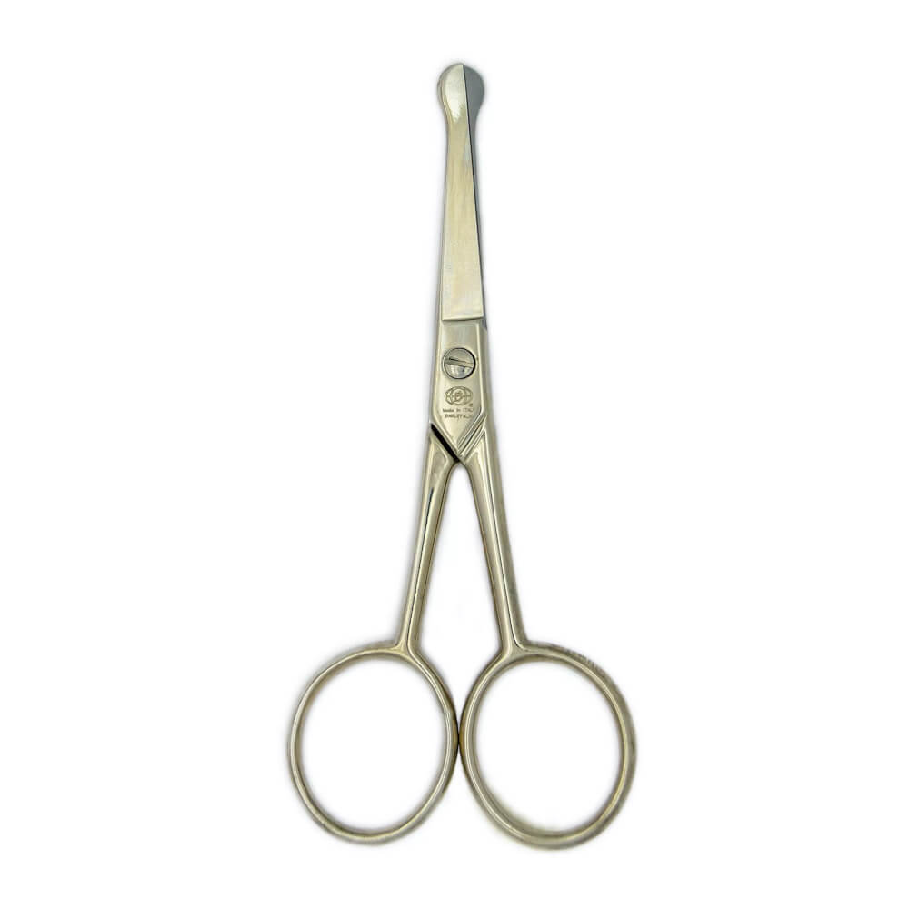 Forbici in acciaio al carbonio con punta arrotondata, appositamente studiate per un taglio preciso e sicuro dei peli nelle zone delicate del naso e delle orecchie. Materiale: Acciaio al carbonio Lunghezza: 10 cm Confezionata in packaging Eco Friendly 100% riciclato.