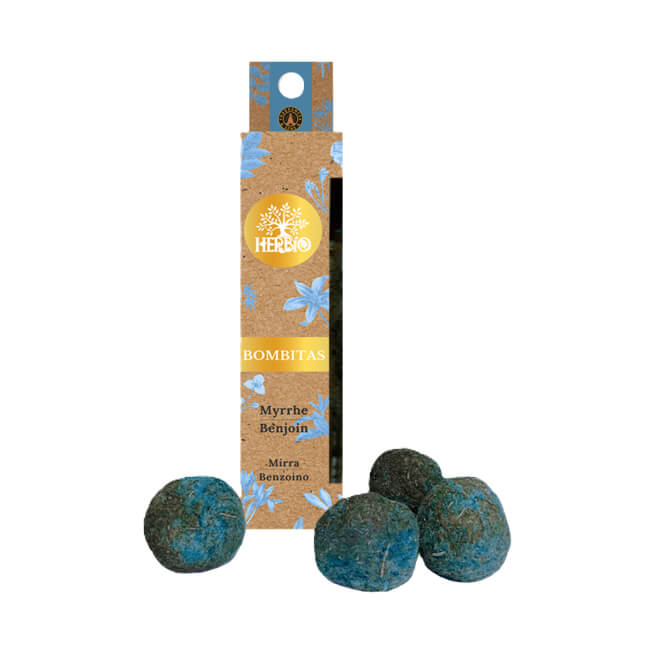 L’incenso Herbio "Bombitas" Mirra e Benzoino è un incenso naturale artigianale in pratiche sfere compatte, studiato per favorire purificazione energetica, armonia e raccoglimento in pochi minuti.