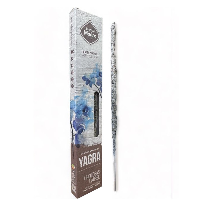 Sagrada Madre ha creato una linea di incensi 100% naturali basati sullo Yagra, una resina con una luminosità bianca stellare e un aroma rinfrescante, associato all'elemento acqua e alla Luna. L'aroma liberatorio dello Yagra è ideale per essere utilizzato nelle pratiche meditative perché promuove la coscienza dell'unità dell'Essere con la Madre Terra. Il potente aroma dello Yagra unito a quello dell'Alloro promuove i profitti e, combinato con il profumo dell'Orchidea, sblocca il potere personale e la strada verso il trionfo, questa miscela unica di fragranze predice un destino prospero. Tempo di combustione circa 60 minuti.
