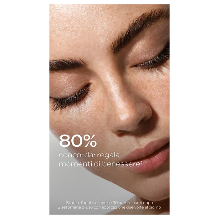 Applica una piccola quantità di prodotto sulla pelle asciutta del viso e degli occhi.