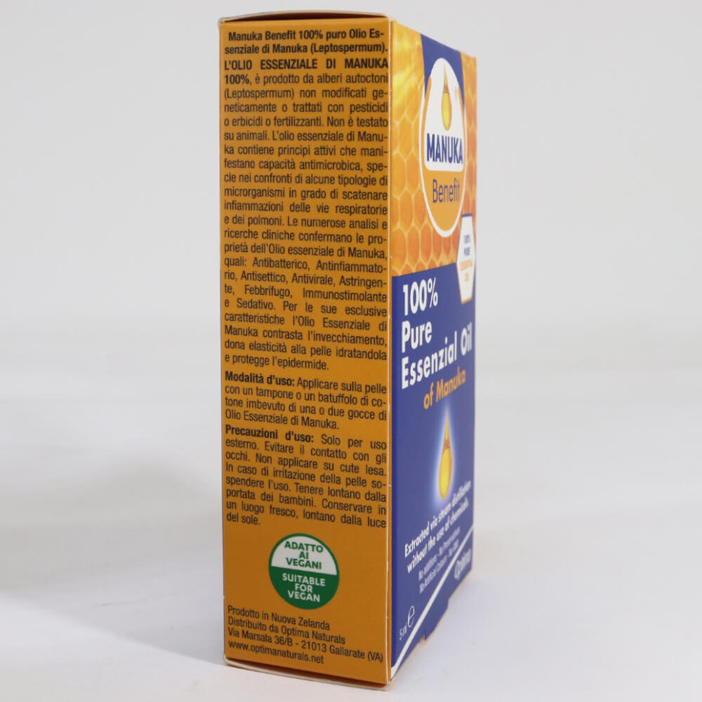 L’olio essenziale di Manuka è ottenuto mediante idrodistillazione delle foglie fresche di Leptospermum scoparium, senza l’utilizzo di solventi o sostanze chimiche. Questa specie è autoctona delle aree costiere della Nuova Zelanda ed è apprezzata per il suo profilo aromatico caldo, speziato ed erbaceo.