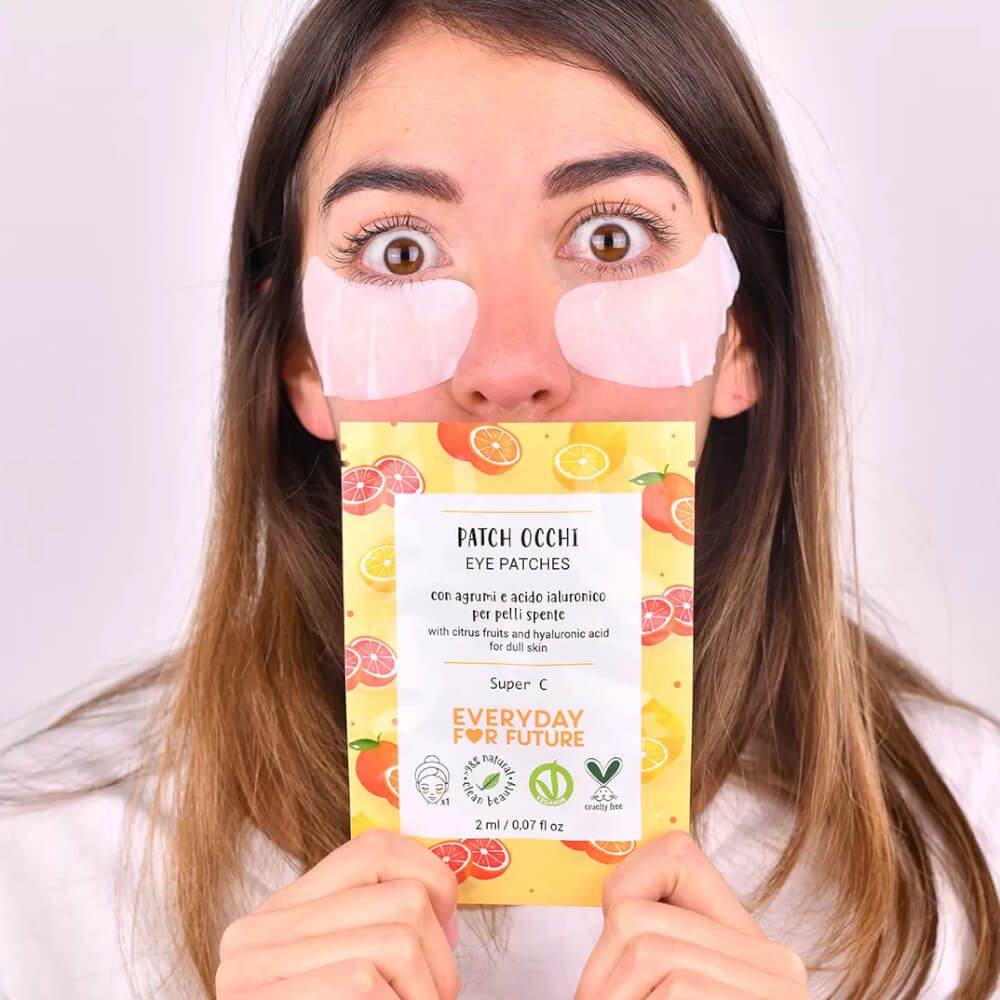 Gli agrumi sono un potente alleato per la nostra pelle, aiutano a prevenire i segni dell'invecchiamento grazie alle loro proprietà antiossidanti. Favoriscono il rinnovamento cellulare e idratano la pelle. La formula è arricchita con acido ialuronico, estratto di Lime ed estratto di Arancia dolce per un effetto anti-età. 6 patch monouso per 3 applicazioni. Everyday for future promuove l'uso di materiali sostenibili come la carta riciclata FSC per la confezione e la plastica monomateriale PP per la bustina. Consigli d'uso: