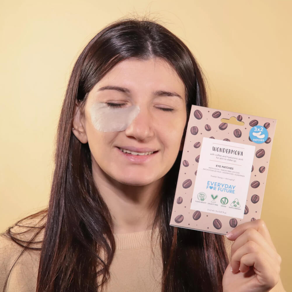 L'estratto di Caffè è un grande alleato per il risveglio della nostra pelle, grazie alle sue proprietà antiossidanti ed energizzanti dona nuova vitalità alla tua pelle. La formula è arricchita con acido ialuronico per un effetto anti-età. Senza profumazione 6 patch monouso per 3 applicazioni. Everyday for future promuove l'uso di materiali sostenibili come la carta riciclata FSC per la confezione e la plastica monomateriale PP per la bustina. Consigli d'uso: