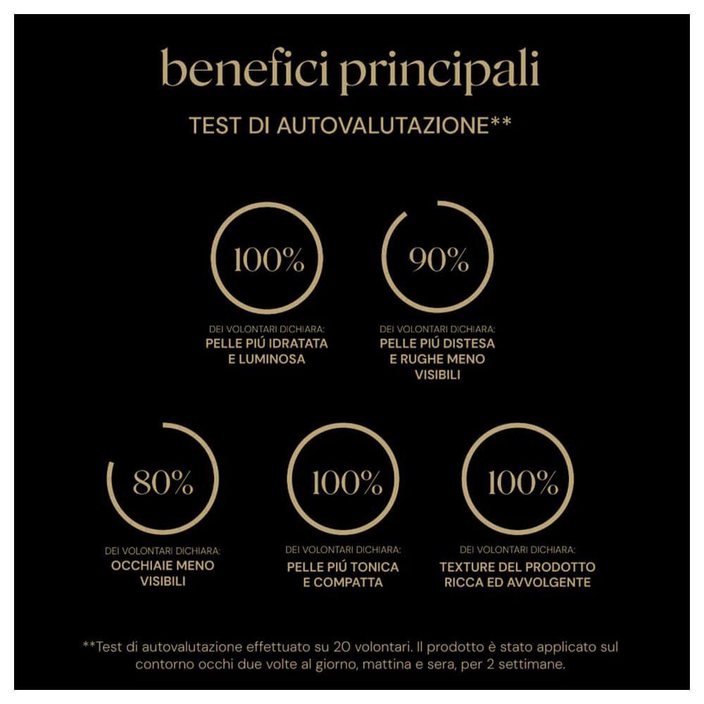 | INCI | Centaurea Cyanus Flower Water*, Butyrospermum Parkii Butter [Butyrospermum Parkii (Shea) Butter], Aqua [Water], Oryza Sativa Bran Oil [Oryza Sativa (Rice) Bran Oil], Prunus Armeniaca Kernel Oil*[Prunus Armeniaca (Apricot) Kernel Oil*], Cetearyl Alcohol, Caprylic/Capric Triglyceride, Propanediol, Dicaprylyl Carbonate, Coco-Caprylate, Glyceryl Stearate, Glycerin, Olus Oil [Vegetable (Olus) Oil], Cera Alba [Beeswax], Tocopheryl Acetate, Sodium Stearoyl Glutamate, Pullulan, Cetearyl Glucoside, Caprylyl Glycol, Tocopherol, Cetyl Palmitate, Vitis Vinifera Seed Oil*[Vitis Vinifera (Grape) Seed Oil*], Acacia Senegal Gum, Acmella Oleracea Extract, Saccharomyces Ferment Lysate Filtrate, Hydrolyzed Rice Bran Protein, Glycine Max Callus Culture [Glycine Max (Soybean) Callus Culture], Honey Extract, Vitis Vinifera Fruit Meristem Cell Culture, Hyaluronic Acid, Sodium Acetylated Hyaluronate, Sodium Hyaluronate, Sodium Hyaluronate Crosspolymer, Acetyl Octapeptide-3, Hydrolyzed Hyaluronic Acid, Acetyl SH-Pentapeptide-35, Diamond Powder, Acetyl Heptapeptide-9, Acetyl Tetrapeptide-17, Colloidal Gold, Colloidal Platinum, Hydrolyzed Rhizobian Gum, Avena Sativa Leaf Extract [Avena Sativa (Oat) Leaf Extract], Caffeine, Caulerpa Lentillifera Extract, Dipalmitoyl Hydroxyproline, Escin, Hydrolyzed Verbascum Thapsus Flower, Opuntia Ficus-Indica Seed Oil*, Gold, Pearl Powder, Tridecane, Undecane, Hydrogenated Vegetable Oil, Parfum [Fragrance], Sodium Anisate, Candelilla Cera, Xanthan Gum, Hectorite, Citric Acid, Tetrasodium Glutamate Diacetate, Pentylene Glycol, Potassium Sorbate, Sodium Benzoate, Ethylhexylglycerin, Phenylpropanol, Glyceryl Caprylate, Benzoic Acid.