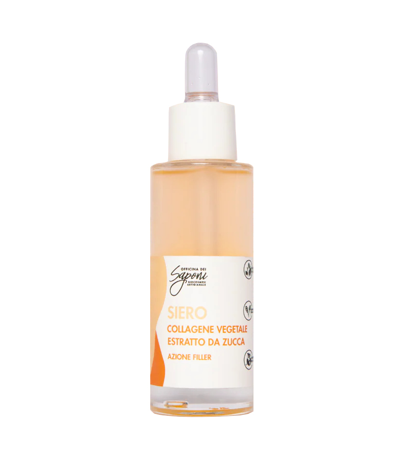 Trattamento intensivo ad azione rimpolpante, questo siero filler al collagene vegetale estratto di Zucca regala alla pelle un aspetto più tonico, uniforme e compatto.